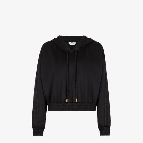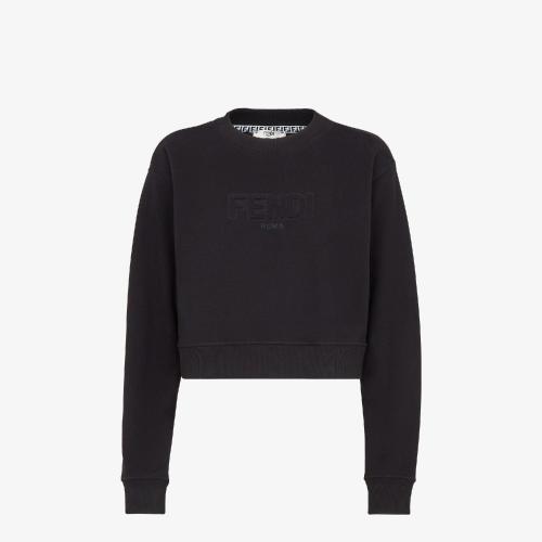 FENDI芬迪 22年秋冬 女士 长袖T恤 黑色针织运动衫 FS7427AHLTF0GME