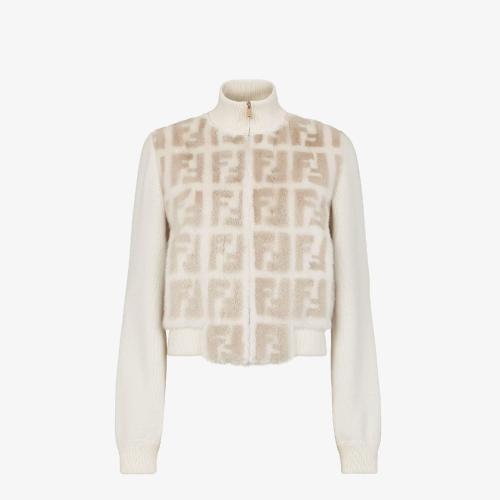 FENDI芬迪 22年春夏 女士 夹克 白色貂毛飞行员夹克 FNE16FAHOVF1FS7