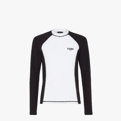 FENDI芬迪 22年秋冬 男士 长袖T恤 白色与黑色棉质T恤 FAF663AM0AF0J8Z