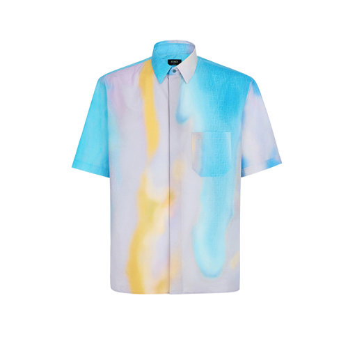 FENDI/芬迪 22年春夏新款 男士拼色纯棉渐变色混搭抽象图案印花短袖衬衫FS1022A9O6F1G38