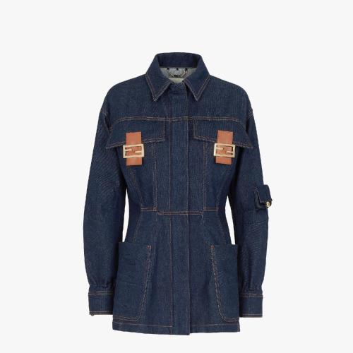 FENDI芬迪 22年秋冬 女士 夹克 蓝色牛仔夹克 FLF703AMGQF1J79