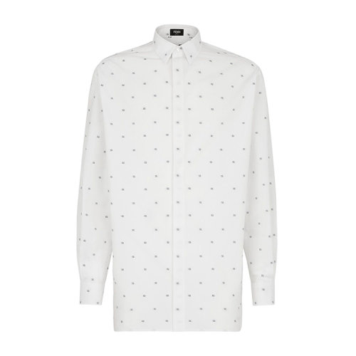 FENDI/芬迪衬衫 白色棉质和桑蚕丝衬衫男士长袖衬衫FS0876AITH
