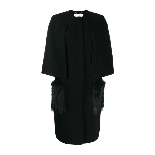 FENDI/芬迪 女装 服装黑色羊毛狐狸毛口袋中长款 女士外套女士大衣 FF8657-A5G0-F0GME