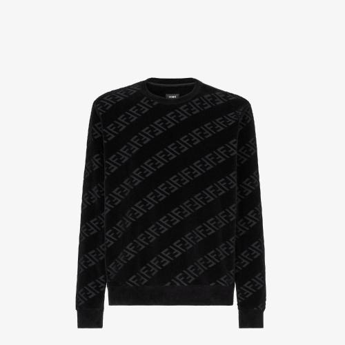 FENDI芬迪 22年春夏 男士 长袖T恤 黑色天鹅绒运动衫 FY0178AHCAF0QA1