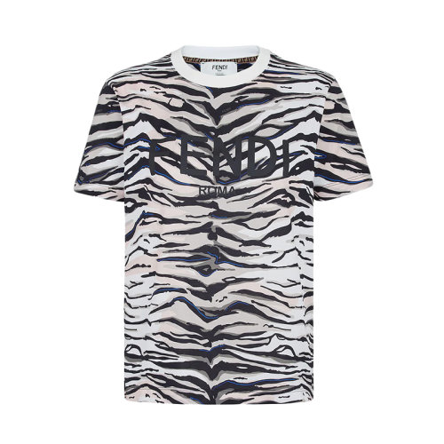 FENDI/芬迪 22年早春新款 女士白色/黑色纯棉虎纹印花短袖T恤FS7254AIDZF03N9