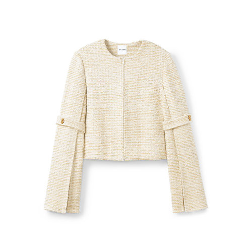 【21春夏新款】St.John/盛蔷粗花呢袖口开叉针织外套女士夹克K6130C1