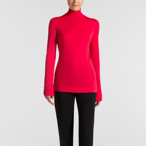 St.John/盛蔷女士 秋冬女士红色绵羊毛修身高领打底女士针织衫/毛衣K51X011