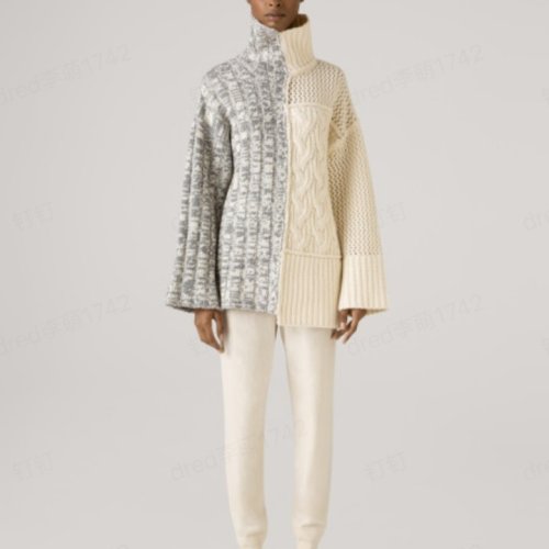 St.John/盛蔷美利奴羊毛和开司米羊绒拼接高领女士针织衫/毛衣毛衣K501002