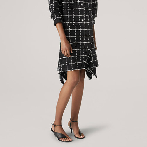 St.John/盛蔷黑白睫毛纱格纹针织短款女士半身裙K7110C3