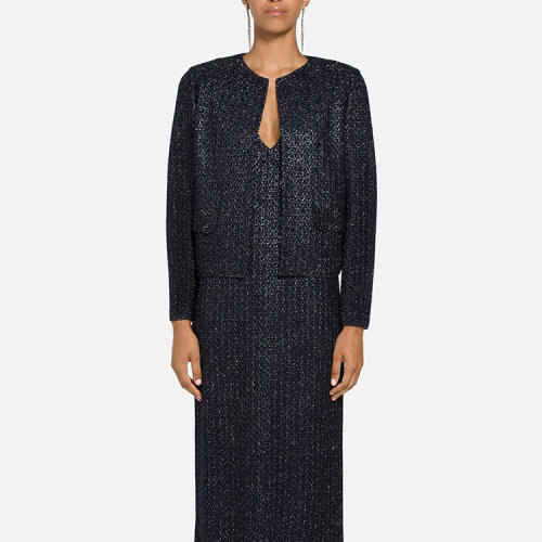 St.John/盛蔷21早秋粘胶提花针织开衫短款女士夹克K6230T2