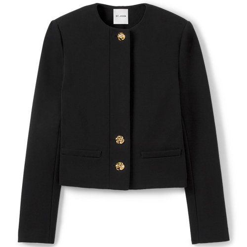 【21春夏新款】St. John/盛蔷 黑色米兰诺针织短款女士夹克K6130E1