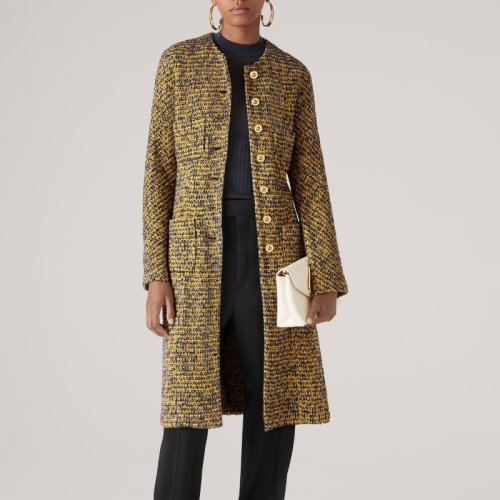 St.John/盛蔷双色粗花呢针织大衣长外套女士夹克K6111C3