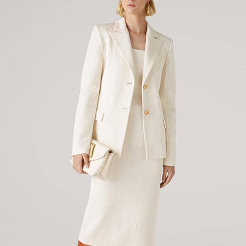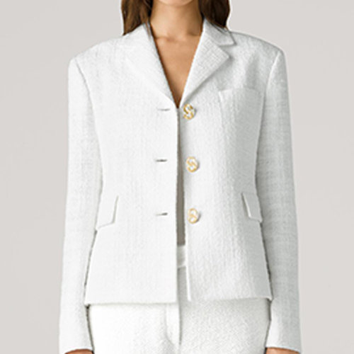 St.John/盛蔷白色奥斯曼格纹针织女士西服西装夹克K6111P2