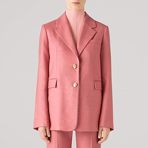 St.John/盛蔷21早秋粉色羊毛蚕丝宽松翻领女士西服外套K614C02