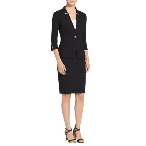 St.John/盛蔷21春夏女士西服黑色春夏季经典翻领一粒扣短款夹克西装外套K64K000