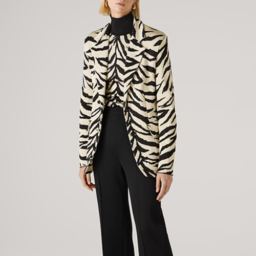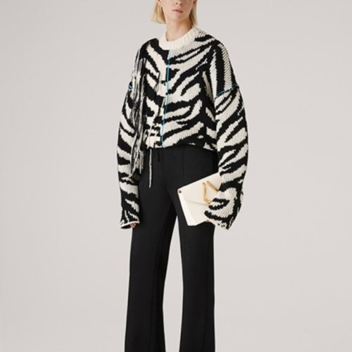 St.John/盛蔷黑白虎纹提花宽松针织流苏女士针织衫/毛衣K5110B3