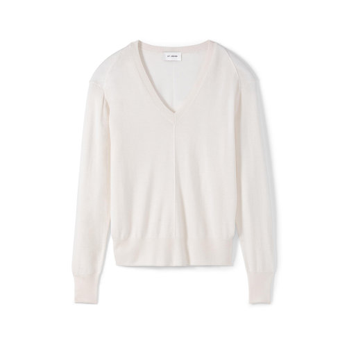 St.John/盛蔷白色羊绒低V领长款女士针织衫/毛衣K501032