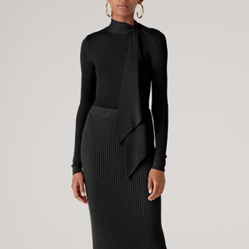 St.John/盛蔷黑色罗纹紧身打底女士针织衫/毛衣K5110H2