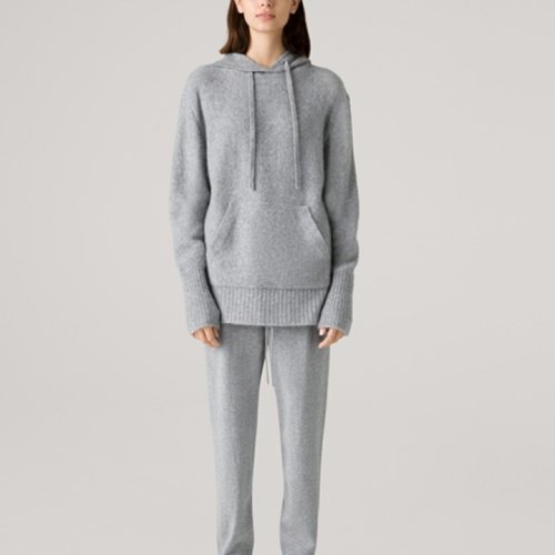 St.John/盛蔷灰色羊绒针织连帽套头衫女卫衣K501042