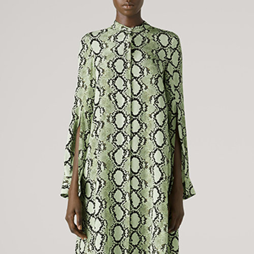 St.John/盛蔷21春夏女士短袖衬衫绿色蛇纹桑蚕丝中长款连衣裙K113C03