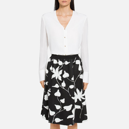 St.John/盛蔷真丝V领女士长袖衬衫K31YW21