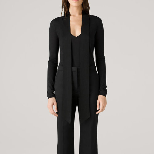 【21春夏新款】St.John/盛蔷2021春季新款女士黑色商务休闲时尚女士长袖衬衫式系带针织衫K5130A1