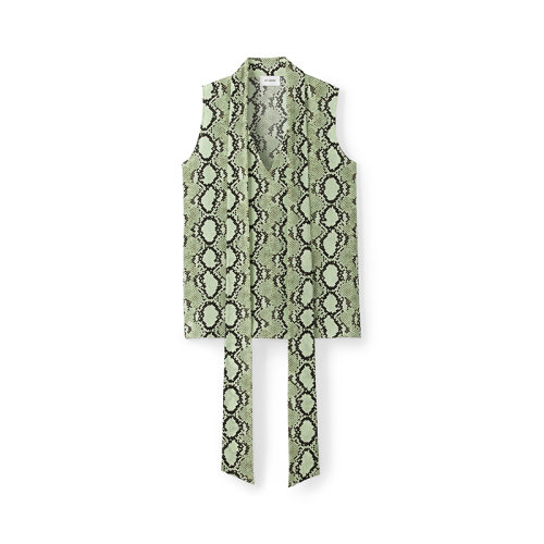 St.John/盛蔷21春夏女士短袖衬衫绿色蛇纹真丝桑蚕丝无袖背心上衣K913C03