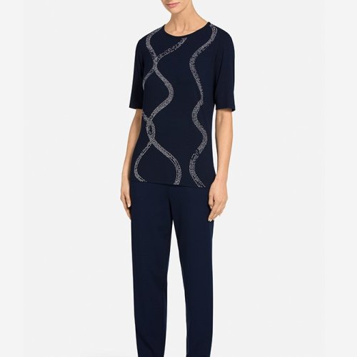 St.John/盛蔷提花修身圆领薄款针织女士短袖衬衫K5100D2