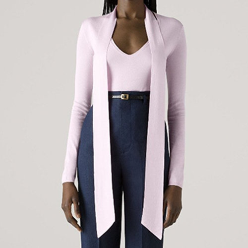 St.John/盛蔷21早秋明纹理睫毛纱针织女士长袖衬衫K924011