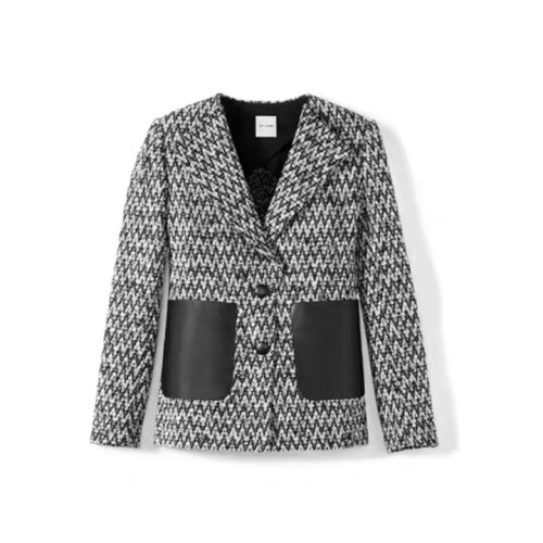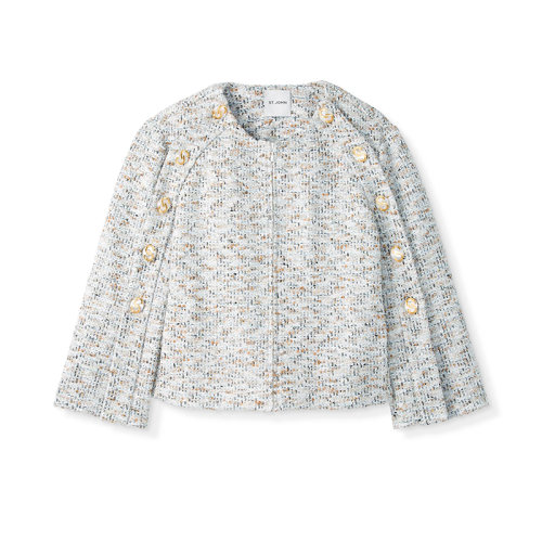 St.John/盛蔷21早秋灰色粗花呢修身女士夹克K6140U1