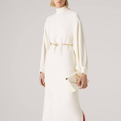 St.John/盛蔷金属环拉链装饰长袖女士连衣裙K111WA1