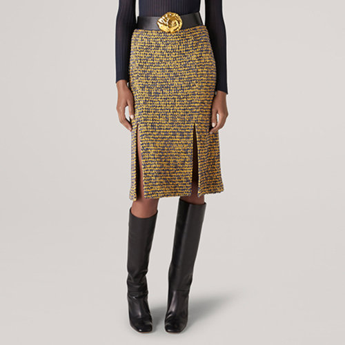 St.John/盛蔷黄色粗花呢提花针织中长女士半身裙K7110K3