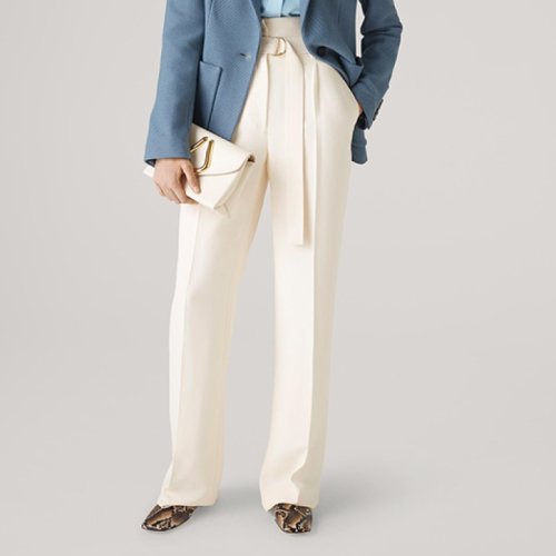 St.John/盛蔷白色系带垂坠阔腿西装长裤女士休闲裤K831W41