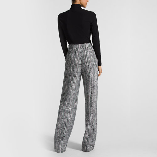 St.John/盛蔷女士条纹针织羊毛修身宽松直筒阔腿女士休闲裤K81X011