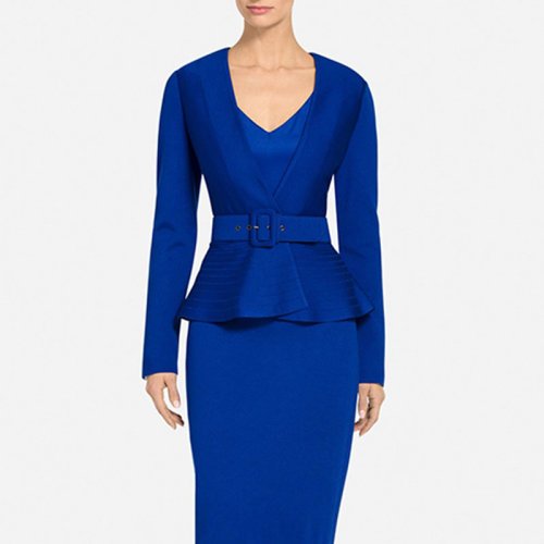 St.John/盛蔷宝蓝色针织荷叶边宴会短款女士夹克外套K6101N1