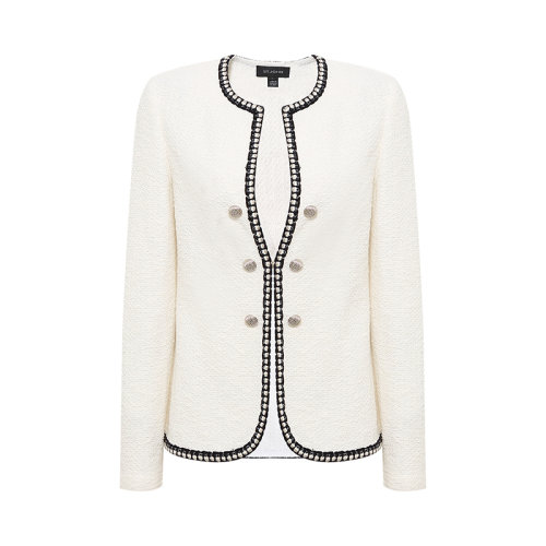 【21春夏新款】St. John/盛蔷 白色圆领小香风针织短款女士夹克K613QY1