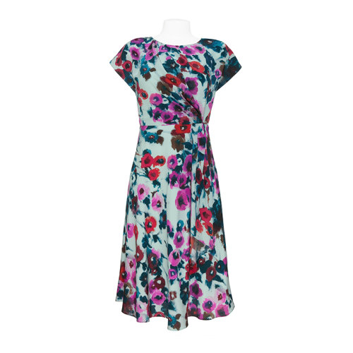 St.John/盛蔷21春夏女士连衣裙彩色花卉印花真丝桑蚕丝连衣裙K113Q52