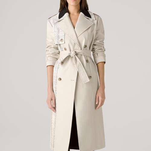 【21春夏新款】St.John/盛蔷2021春季新款针织工艺混搭中长款女士风衣大衣H613WB1