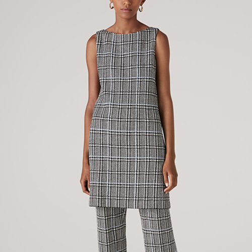 St.John/盛蔷黑白格子呢无袖中长款女士连衣裙K1110C1