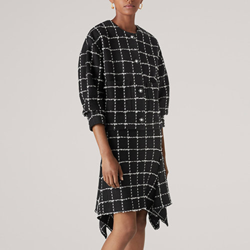 St.John/盛蔷女士黑白睫毛纱格纹短款针织女士夹克外套K6110L3
