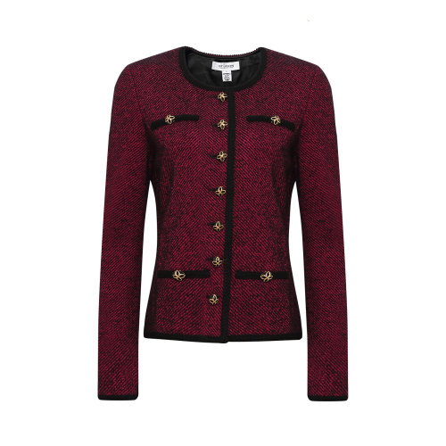 St.John/盛蔷红色修身粗花呢针织女士夹克外套K6100V2