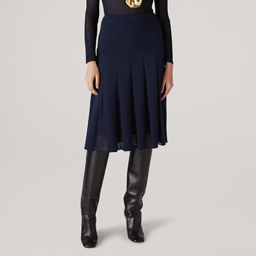 St.John/盛蔷藏青色压褶中长款针织女士半身裙K7110F1