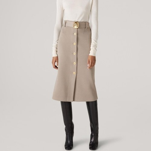 St.John/盛蔷细羊毛横棱纹针织中长款女士半身裙K7110I1