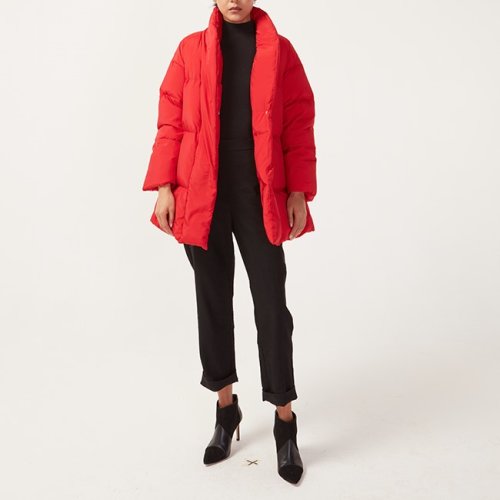 St.John/盛蔷立领收腰中长款女士羽绒服H611A11