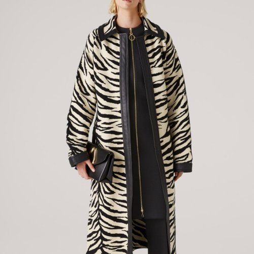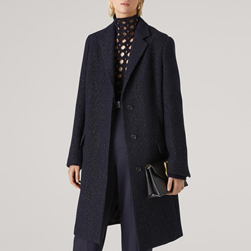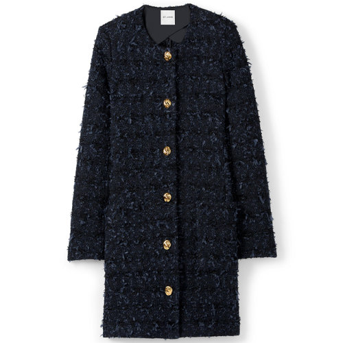 St.John/盛蔷藏青色金属细闪长款大衣女士夹克外套H611WE1
