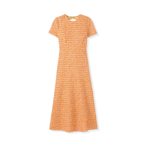 St.John/盛蔷21早秋橙色粗花呢露背针织女士连衣裙K1240G1