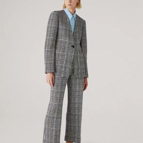 St.John/盛蔷黑白格子呢宽松西装女士夹克外套K6111C1