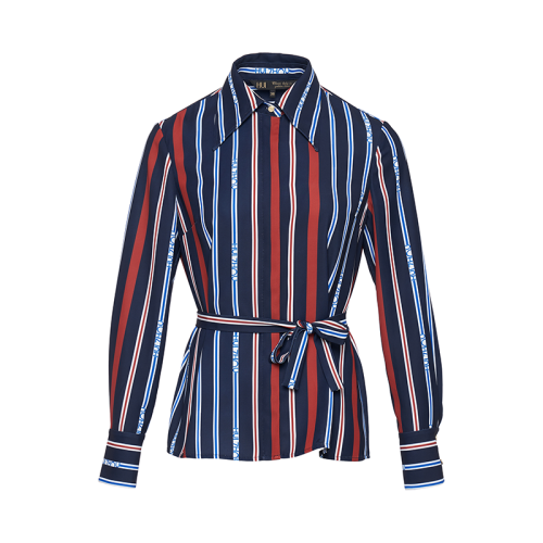 HUI/卉 女士长袖衬衫2020秋季新品蓝色条纹衬衫V领灯笼袖设计