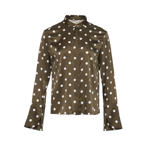 HUI/卉 女士长袖衬衫2020秋季新品绿沈色波点衬衫领带设计