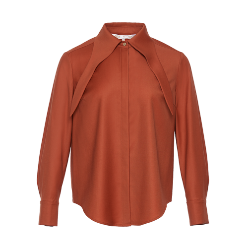 HUI/卉 女士长袖衬衫2020秋季新品杏红色复古衬衫精纺羊毛面料设计